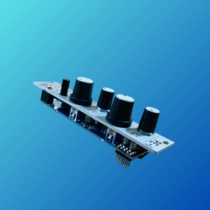 ‘PE-1’ is a dual band parametric EQ and simple two channel mixer. Two control sections provide a sweepable cut or boost to a selectable upper and lower frequency band. The module has two ac-coupled audio inputs, one of which has an attenuation control for basic mixing, and a single audio output.