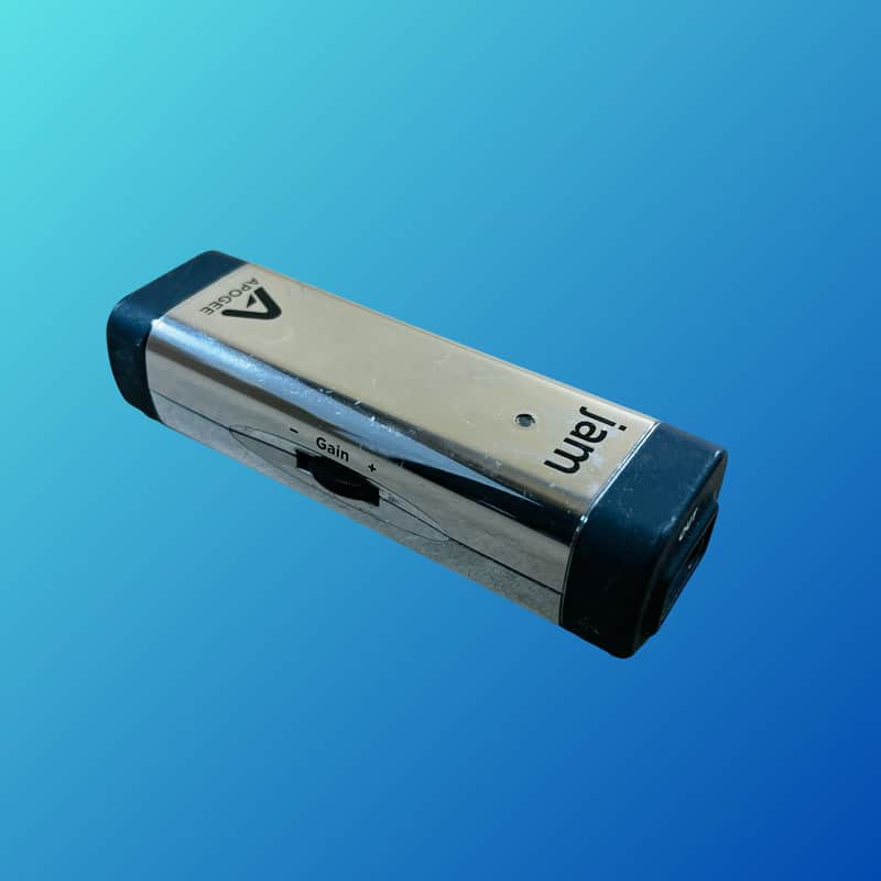 The Apogee Jam 96K USB Guitar Interface is a portable digital audio interface for connecting guitars, basses, and other instruments to computers (Mac and Windows) or iOS devices (iPhone, iPad) for high-quality recording. It features a 1/4″ instrument input and USB connectivity, plug-and-play operation, and captures audio up to 24-bit/96 kHz resolution with a warm, tube-like tone. It is powered by the device it’s connected to and includes features like an input level control knob and a multicolor LED for monitoring.