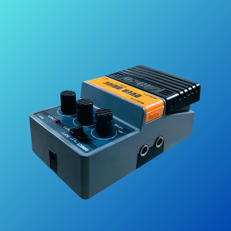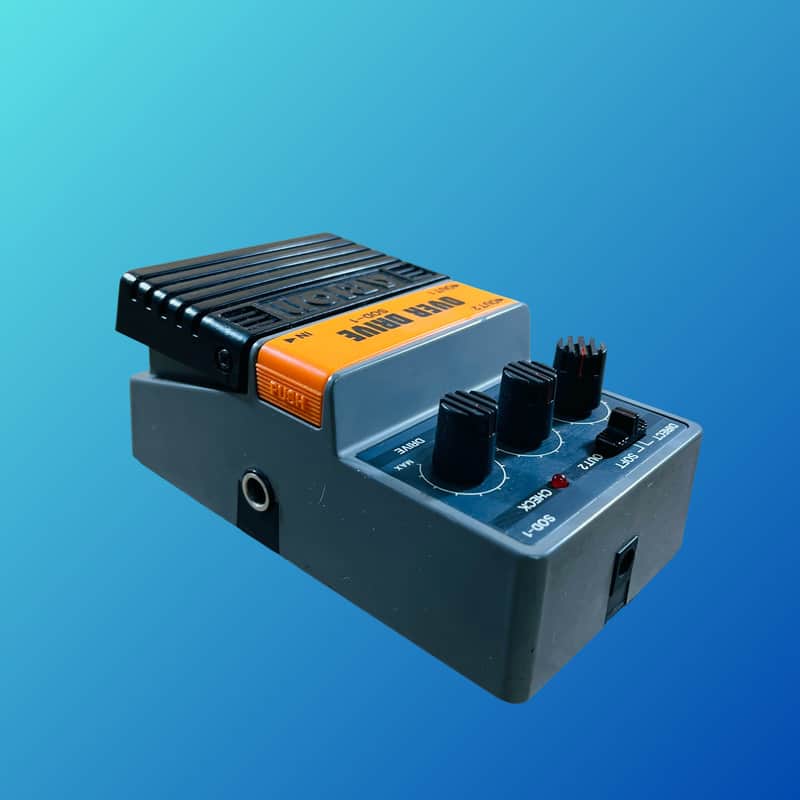 The Arion SOD-1 is a Japanese-made overdrive pedal with stereo output — one standard affected signal and one which can switch between the dry signal or a “soft”.