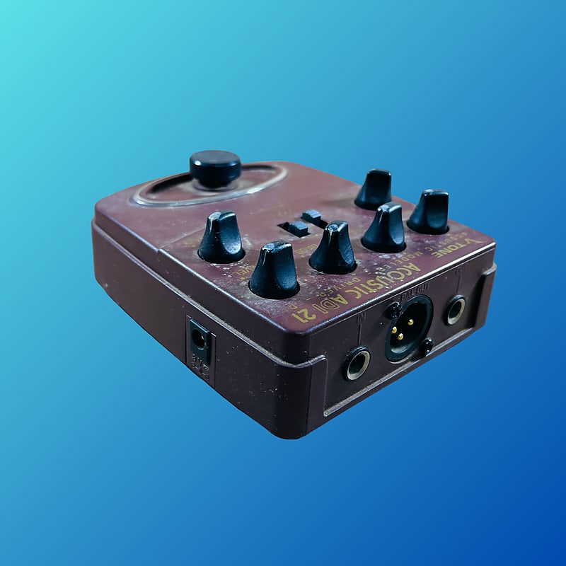 For an unplugged sound that’s rich, loud and electrifying, step on the V-TONE ACOUSTIC DRIVER DI ADI21. This amazing little box is essential for piezo-equipped guitars and will make your acoustic guitar sound come to life! The ADI21 combines the features of an active DI (direct injection) box with our proprietary tube/mic emulation circuitry. Enjoy a full 3-band EQ with sweepable mids and a Blend control that allows you to mix the amount of amp and mic emulation you want with your direct signal. And if you prefer the “old-school” approach, just step on the switch and the ADI21 functions as a rather superb active DI box.