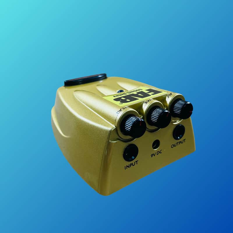 The Danelectro FAB Delay can provide up to 600ms of delay and can be adjusted using simple Delay, Time, and Repeat controls.