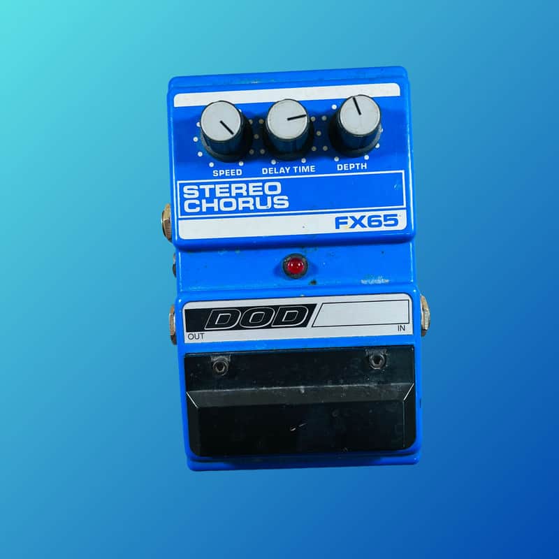 The DOD Stereo Chorus FX65’s first series was initially produced in 1985 as an improvement upon DOD’s beginner FX60 Stereo Chorus. Its analog chorus, using an MN3007 BBD chip, is controlled using Speed, Delay Time, and Depth knobs to thicken up your tone. Two output jacks give you great, subtle stereo chorus sound.