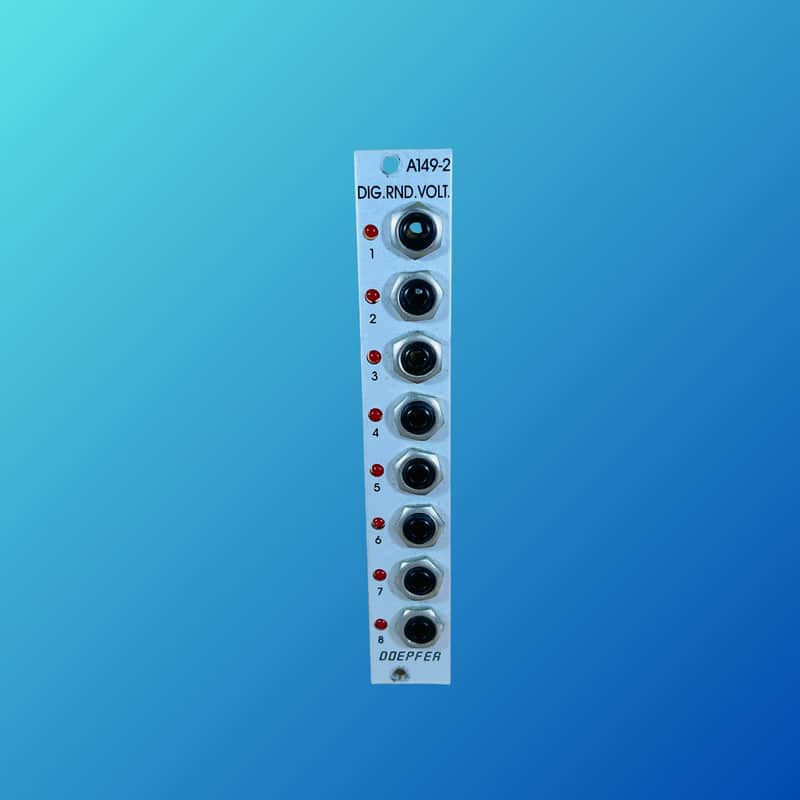 The Doepfer A-149-2 Digital Random Voltages module is a 4HP, Eurorack-format expander that provides eight digital random voltage outputs (gate/trigger signals) for the companion Doepfer A-149-1 Quantized/Stored Random Voltages module. It cannot function independently.