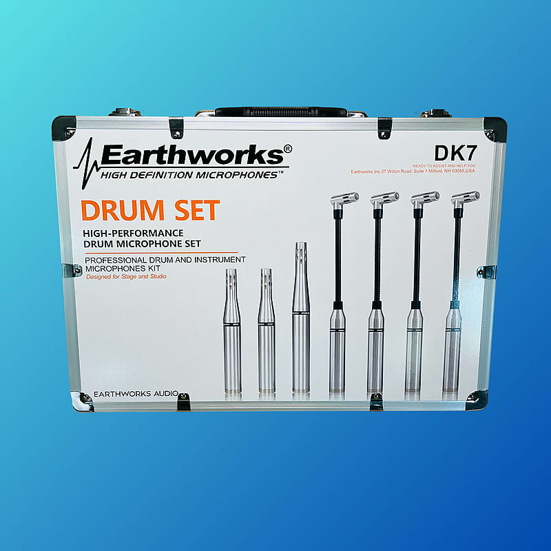 The Earthworks DK7 Drum Kit System is a seven-piece condenser microphone set designed for high-fidelity drum recording in both live and studio settings. It is known for its transparent sound, fast impulse response, and excellent transient detail, which ensures an accurate capture of the drum kit’s sound.