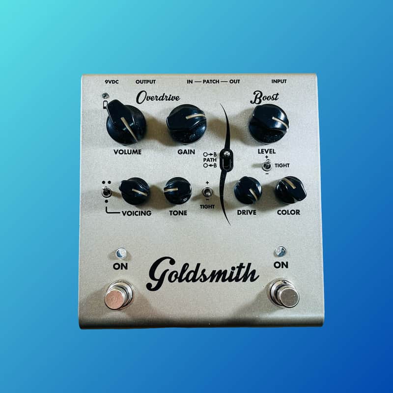 The Egnater Goldsmith is a dual overdrive and clean boost featuring a Voicing knob to set the overdrive range between two customizable frequencies.