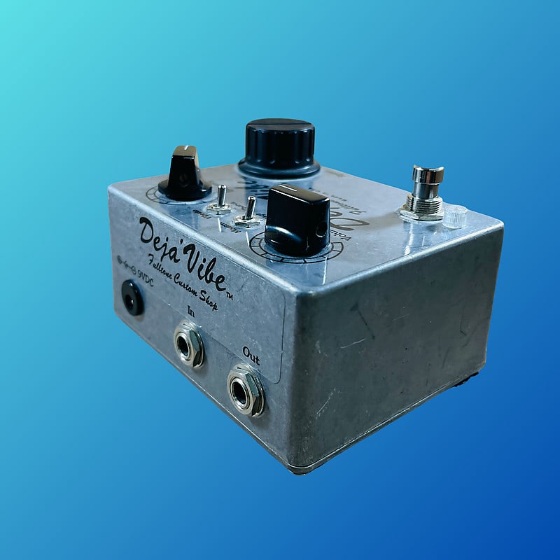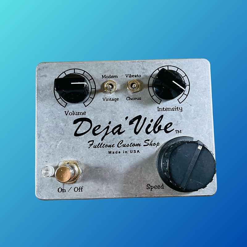The Fulltone Custom Shop Deja Vibe, specifically the MDV-3 (Mini Deja Vibe 3), is a high-quality, analog effect pedal designed to emulate the classic Univibe sound. It’s a compact version of the original Deja Vibe, offering a smaller footprint on pedalboards while retaining the authentic Univibe character. The MDV-3 features true bypass switching, a Vintage/Modern preamp switch for tonal variations, and a large, foot-controllable speed knob for dynamic modulation adjustments.