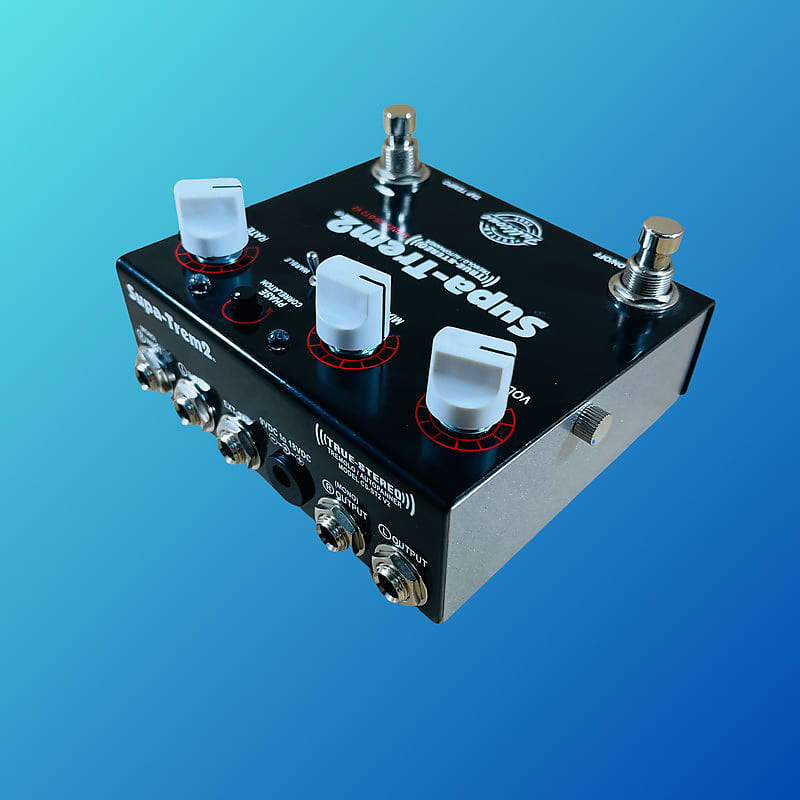 Expand the sound of your guitar rig with the Fulltone Supa-Trem2 Stereo Tremolo pedal. This isn’t some half-hearted stereo pedal; it’s two identical circuits that run in true stereo. The Supa-Trem2 uses a custom-made photo-cell, like vintage tube amps, but this one is noise-free and gives you an amazing level of control. Cool controls such as Tap Tempo and Phase Correlation let you create a massive, stereo trem sound for your guitar or keyboard setup.