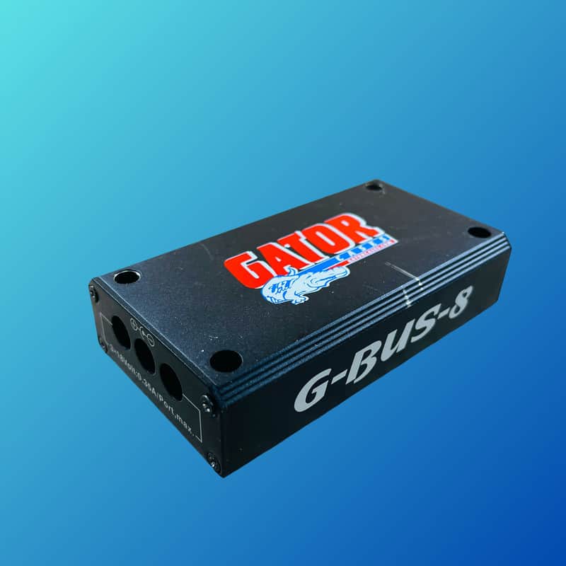 The G-Bus-8-US Pedalboard Power Supply is a one-unit solution for powering and protecting all your effect pedals. It gives you 8 – 9V outputs, and 3 – 18V outputs, provides short circuit protection, and is housed in a roadworthy heavy-duty aluminum casing that mounts easily to most pedalboards.