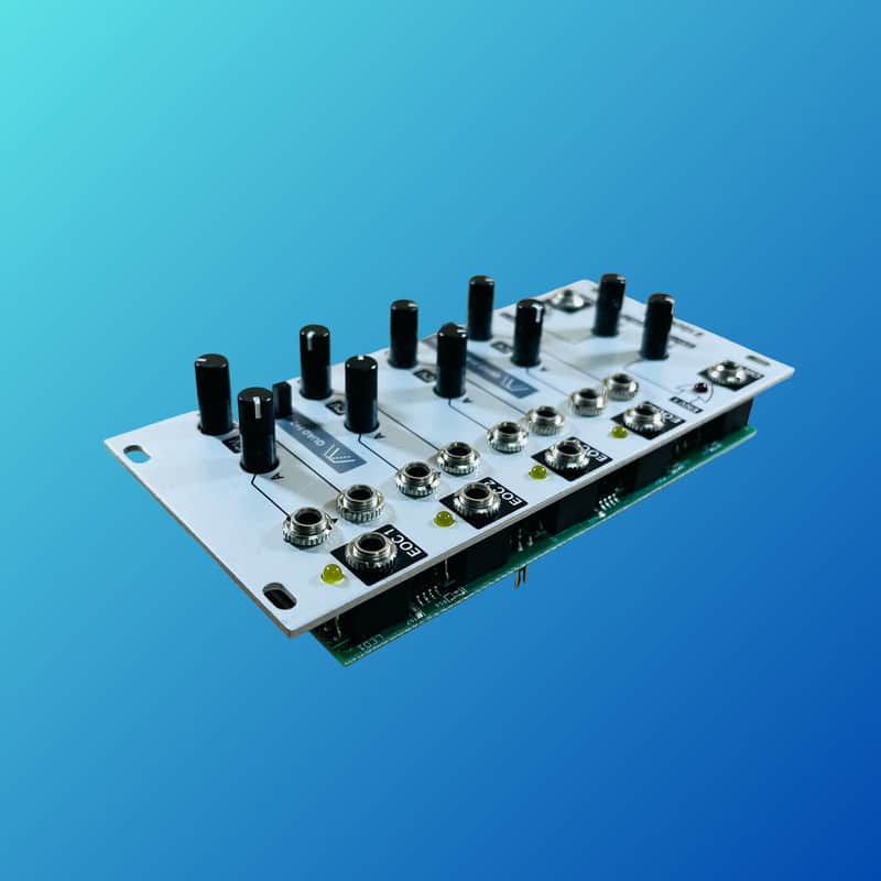 The Intellijel Quadra Expander is an add-on module for the Intellijel Quadra function generator, adding voltage control (VC) to attack/decay, four End-of-Cycle (EOC) pulse outputs, two analog OR logic outputs for envelope pairs, and special quadrature modes for enhanced self-modulating patches, effectively deepening the Quadra’s capabilities beyond basic envelopes and LFOs. It connects via ribbon cables and significantly expands the patching potential for complex, evolving soundscapes.