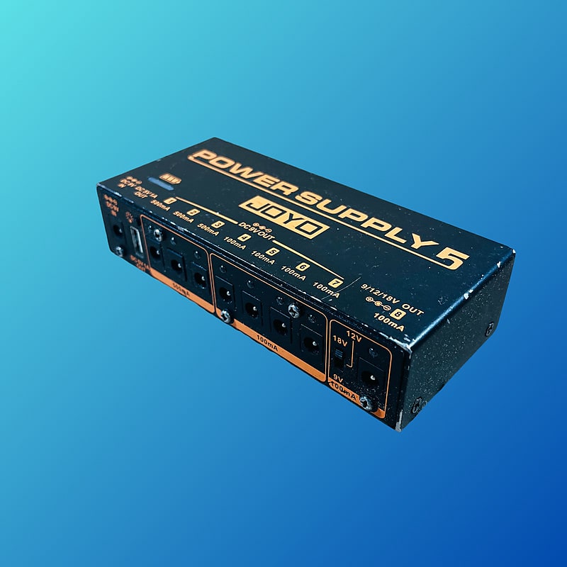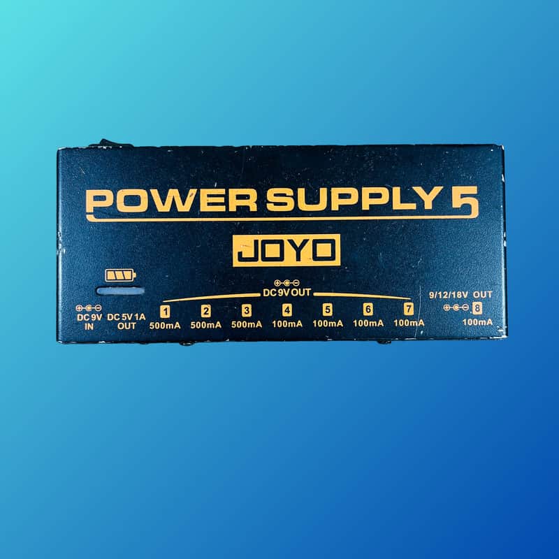 JOYO’s JP-05 power supply has 8 DC outputs and 1 standard USB output, one of the 8 outputs can be switched between 9V, 12V and 18V for the odd pedals.
