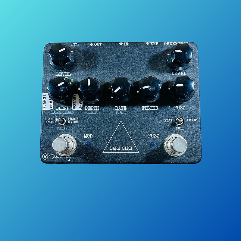 As its name and design graphic indicate, Keeley’s Dark Side Workstation V2 takes its inspiration from David Gilmour’s iconic guitar tone on Pink Floyd’s Dark Side of the Moon. But whereas Gilmour used various reverbs, a Uni-Vibe (a phase for chorus and vibrato sounds), a Binson Echorec tape echo unit, and some other odds and ends, Keeley imbue the Dark Side Workstation V2 with a range of effects. Delay, modulation, and fuzz allow players to simulate these vintage effects in one package, all while creating something uniquely futuristic and unbound by the past.