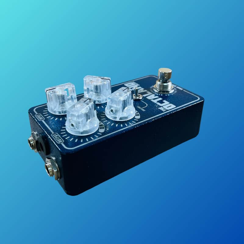 The Octaland is a no compromise high octave tone monster. The Octaland now features a wide drive control, this allows you to go from almost clean octave tones, to screaming, sustaining lead tones and everything in between. Super Smooth, Playable, No Compromise High Octave Tones.