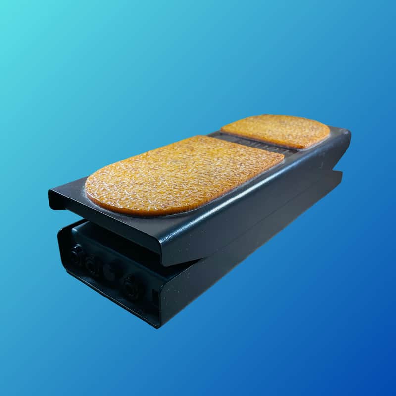 The LEHLE MONO VOLUME 90 is a volume pedal equipped with a precise magnetic sensor enabling it to operate almost wear-free. This sensor uses the Hall effect, named after Edwin Hall, to measure the strength of magnetic fields. In the LEHLE MONO VOLUME 90, the Hall sensor, which is made in Germany, is accurately calibrated to the built-in magnet and the control range of the pedal. The pedal moves only the magnet, the distance is measured by the Hall sensor which controls a VCA.