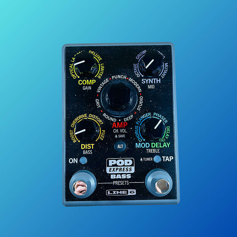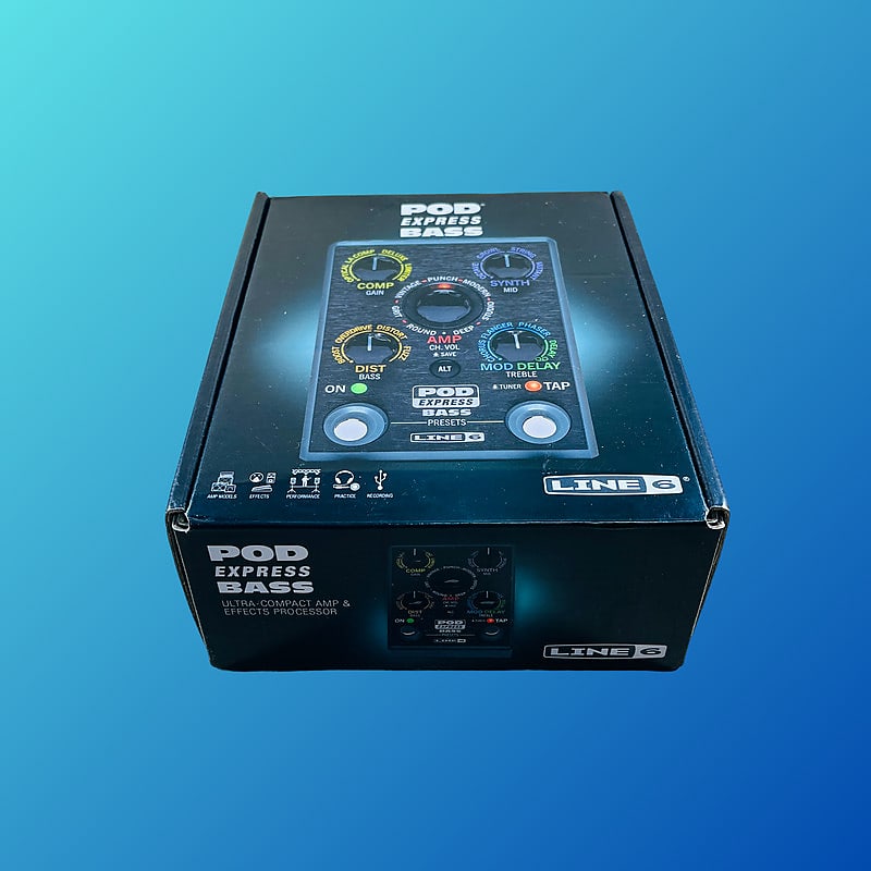 POD® Express Bass is an ultra-portable bass amp and effects processor that enables bassists to take their tones wherever they choose. Simple controls make it easy to use, while models derived from the HX® family of processors ensure exceptional sound quality and authentic feel. POD Express Bass gives bassists seven amps, seven cabs, and 17 distortion, compression, synth, modulation, and delay effects—including a looper—and it may be powered by three AA batteries (included) or an optional 9-volt power supply.