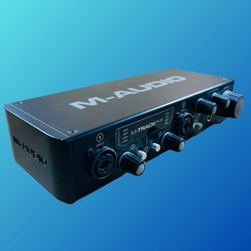 The M-Audio M-Track Plus is a two-channel USB interface that upgrades the original M-Track M-Audio. The M-Track Plus upgrades the original M-Track by sporting both USB and MIDI connectivity, phantom power and guitar-level switching, an insert jack for outboard effects, and a digital I/O using S/PDIF, as well as a variety of other features.