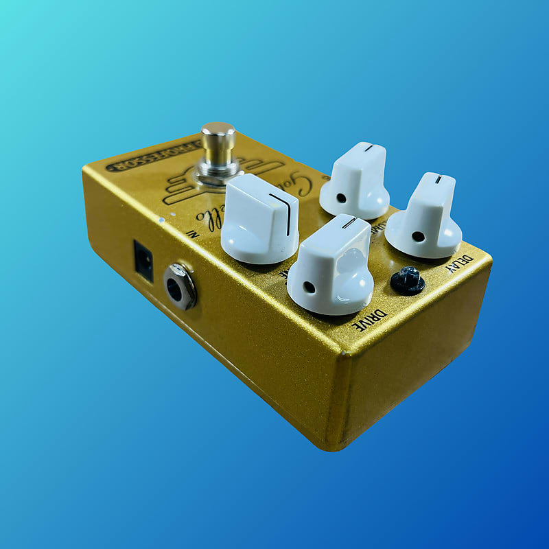 The Mad Professor Golden Cello is a combination Delay and Distortion pedal that creates incredible cello-like sounds. You can use both the Tape Delay and Overdrive separately or together, allowing you to shape your tone with Delay, Drive, Volume, and Tone knobs. Make your guitar sound like a bowed instrument with the Mad Professor Golden Cello.