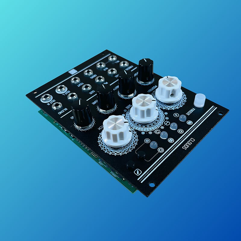 The Mutable Instruments Clouds is a real-time granular audio processor / texture synthesizer for the Eurorack format with a number of different modes, twists, and under full voltage control. Like many granular processors, the Clouds features controls for grain position, size and pitch but goes extra steps and has control of texture density, and can superimpose many grains simultaneously with blend control and reverb processors. Clouds has a huge feature set, and offers alternate modes of processing and mixing from simple to delays, to buffer freeze/glitch modes, to wild pitch shifting and time stretching modes capable of mangling your recognition.