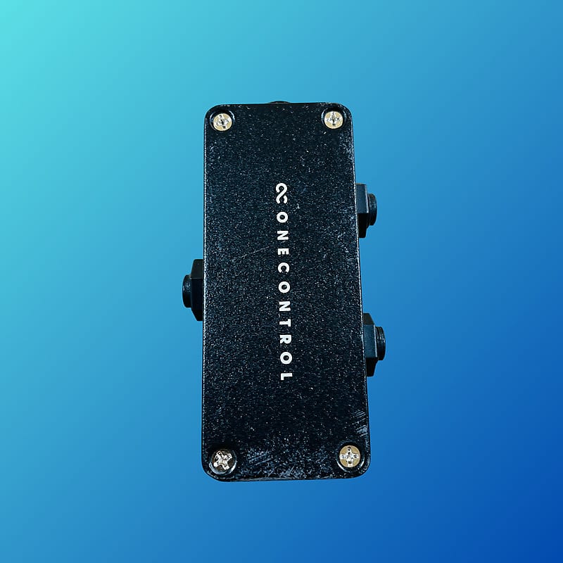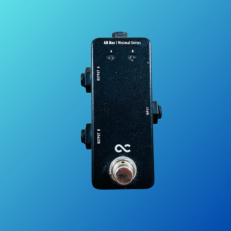 The One Control Minimal Series AB Box is a compact, true bypass A/B switcher for routing one signal to two destinations or vice versa, ideal for selecting between two amps, instruments, or effects chains, and functions passively (LEDs need 9V power) for mute/tuner functions or input selection, featuring durable metal housing and dual LEDs for visual confirmation.