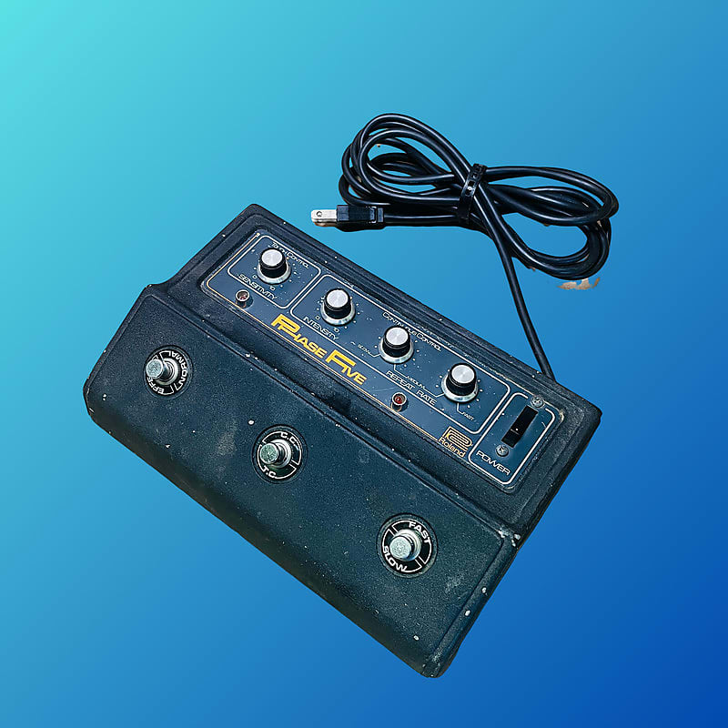 One of the company’s earliest entries in the world of phasers, the Roland AP-5 Phase Five bolstered the standard intensity and sensitivity controls with fast/slow parameters for Leslie-style warble and an onboard LFO when you want to send your sound to space. Able to ramp the speed of the effect up and down with the third footswitch to achieve analog organ-style swirl, the trump card in this early oddball is the C.C./T.C. (Continuous Control/Touch Control) which makes the effect respond to your input, producing enormous echo chambers. A collector’s piece and pedalboard crown jewel for ’70s effects enthusiasts.