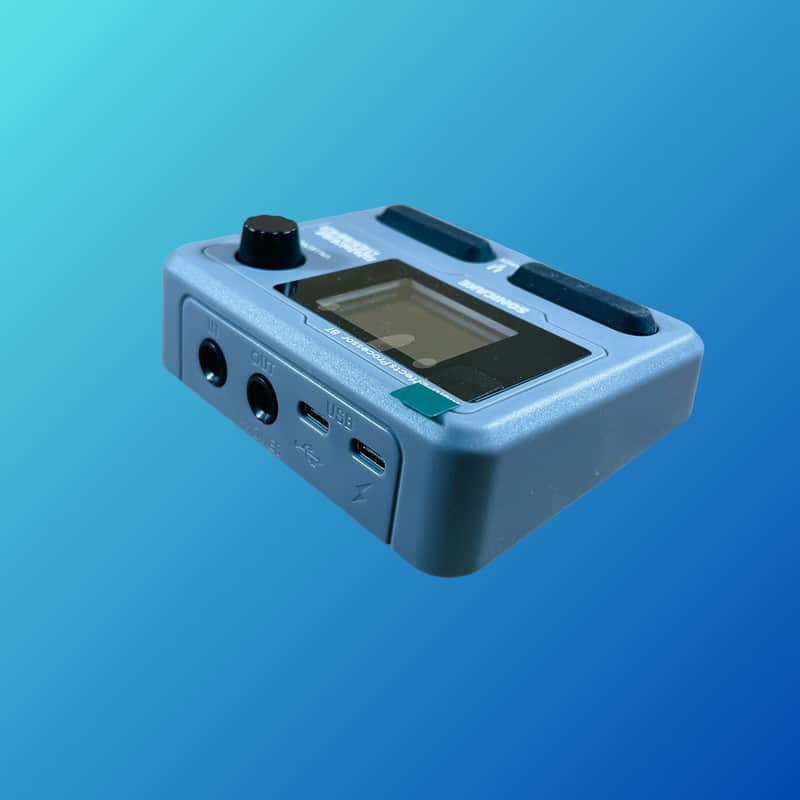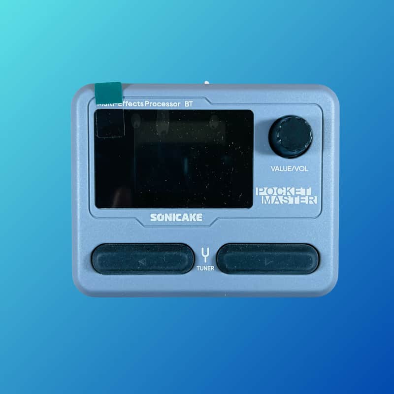 The SONICAKE Pocket Master is a highly portable, battery-powered multi-effects pedal and audio interface for guitarists, featuring 100+ effects, 20 amp models, a looper, drum machine, Bluetooth, and a color LCD screen, offering extensive sound shaping, recording (via USB-C OTG), and silent practice with headphones in a pocket-sized unit. It supports external IR loading, app-based editing (Sonic Link), and functions as an all-in-one solution for practice, recording, and performance, boasting up to 4 hours of battery life.